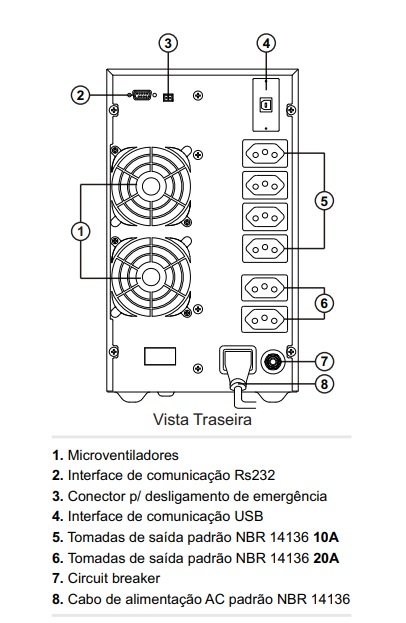 » Função EPO, interruptor de desligamento de emergência que desconecta imediatamente as cargas